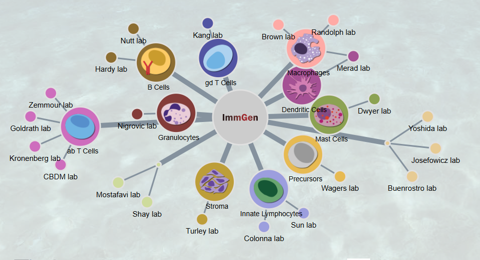 The Immunological Genome Project (ImmGen) is a collaborative effort among leading immunology and computational biology labs dedicated to uncovering the complexities of gene activity and regulation within the immune system of the mouse. By identifying gene expression patterns, regulatory elements, and their connectivity, ImmGen provides insights into how genes are controlled during immune cell differentiation and activation, influenced by factors like genetic variation and immune challenges.